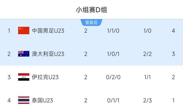 在C组的排名确认之后,国足目前最大的目标当然是争夺D组第一的位置。目前D组的积分榜当中,国足以4分的优势领跑,澳大利亚3分,伊拉克2分,泰国队1分,四支球队也都还有出线的可能性。在对阵泰国队的比赛当中,如果国足U23能够拿到比赛的胜利,毫无悬念的会拿到小组第一的位置,其余两个对手的比赛不会对国足的排名造成任何影响,主动权掌握在国足的手中。